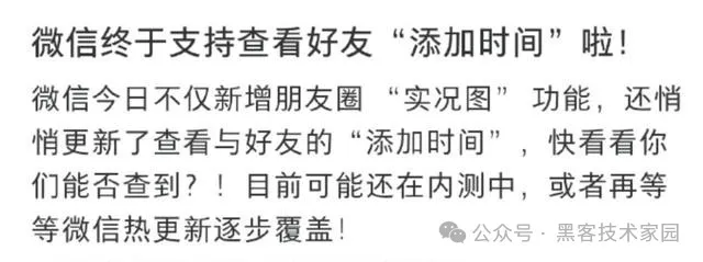 除了新增朋友圈“实况图”之外,微信还更新了查看与好友的“添加时间”,目前可能还在内测中。