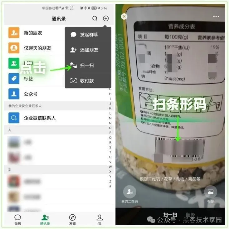 首先我们打开微信首页点击右上角的“⨁”按钮选择【扫一扫】功能一般用于扫码支付。其实我们也可以通过扫描商品的条码来获取商品信息和价格。