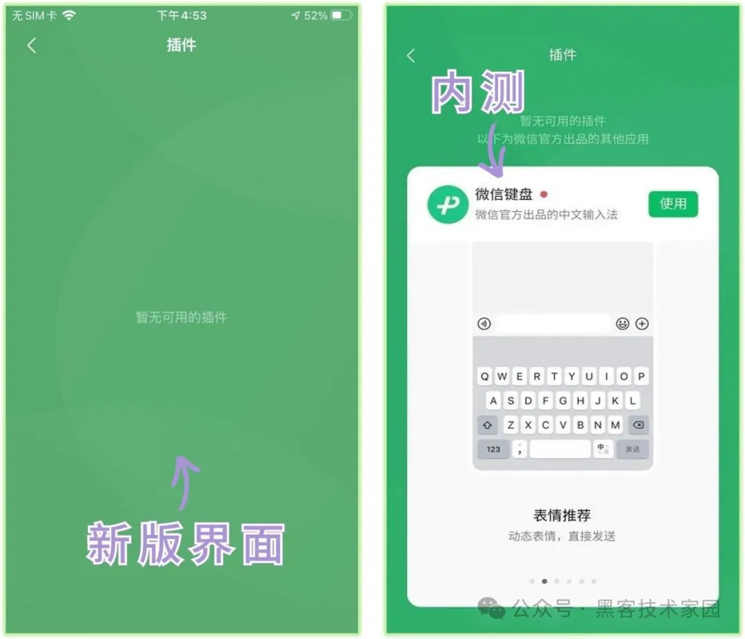 插件页面颜色由橙色变为深绿色OS版微信键盘终于开启内测这意味着iPhone用户也能在短时间内使用微信键盘。