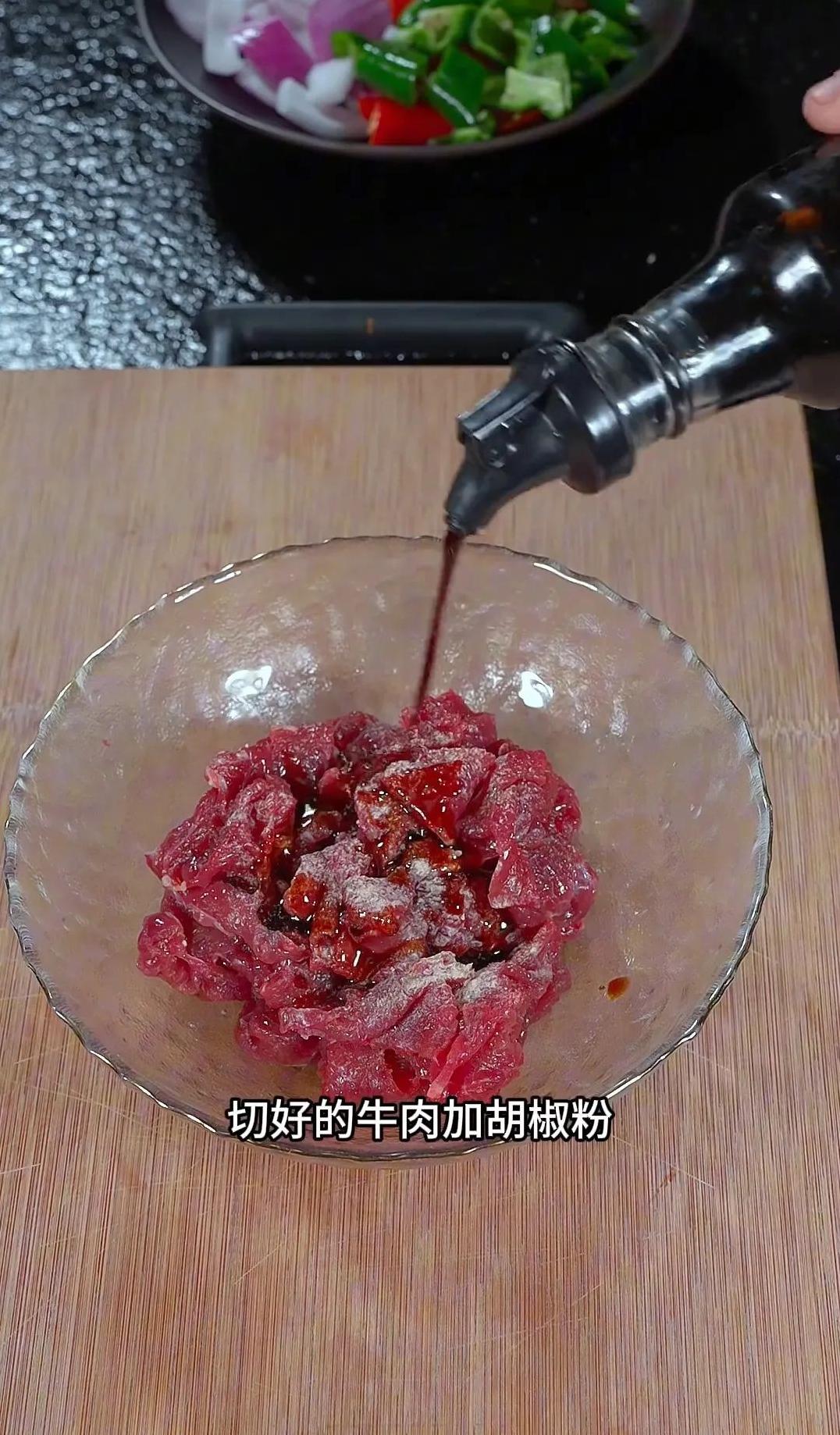 接着,用生抽、料酒和少许白胡椒粉腌肉,这是让牛肉入味的秘密武器。