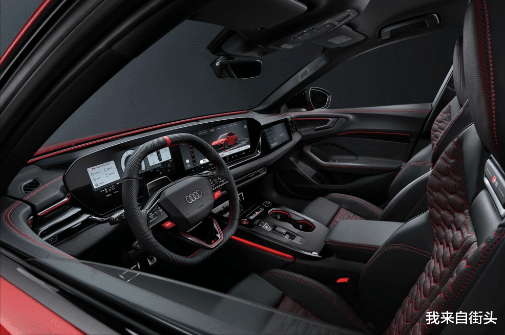 内饰则延续以往的黑色设计,并配以11.9寸奥迪虚拟座舱和14.5寸MMI触控式屏幕组成的全景显示屏幕,副驾座则额外配有10.9寸的娱乐影音屏幕。前排的运动座椅采用蜂窝状绗缝设计,并标配电动调节和按摩功能。入门级RS 5不提供真皮座椅,而高配版则可选装红色/灰色真皮座椅。