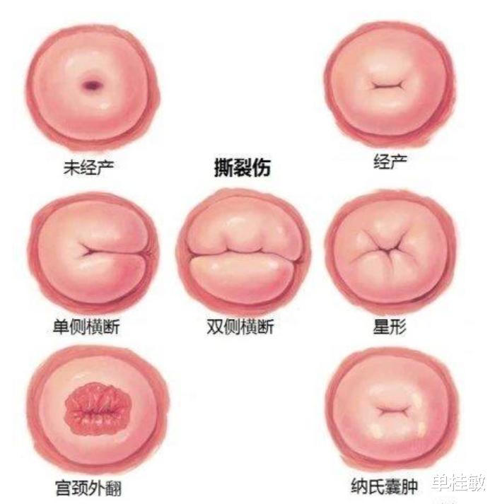 您看到的这张图片,尤其是这张图片第1个,是正常的宫颈,它是圆圆的,宫颈口很小,就是没有经过分娩的宫颈口。这个宫颈口在排卵的时候,接受精子它是张开的,运动力很强的精子就会很容易通过宫颈口去怀孕。