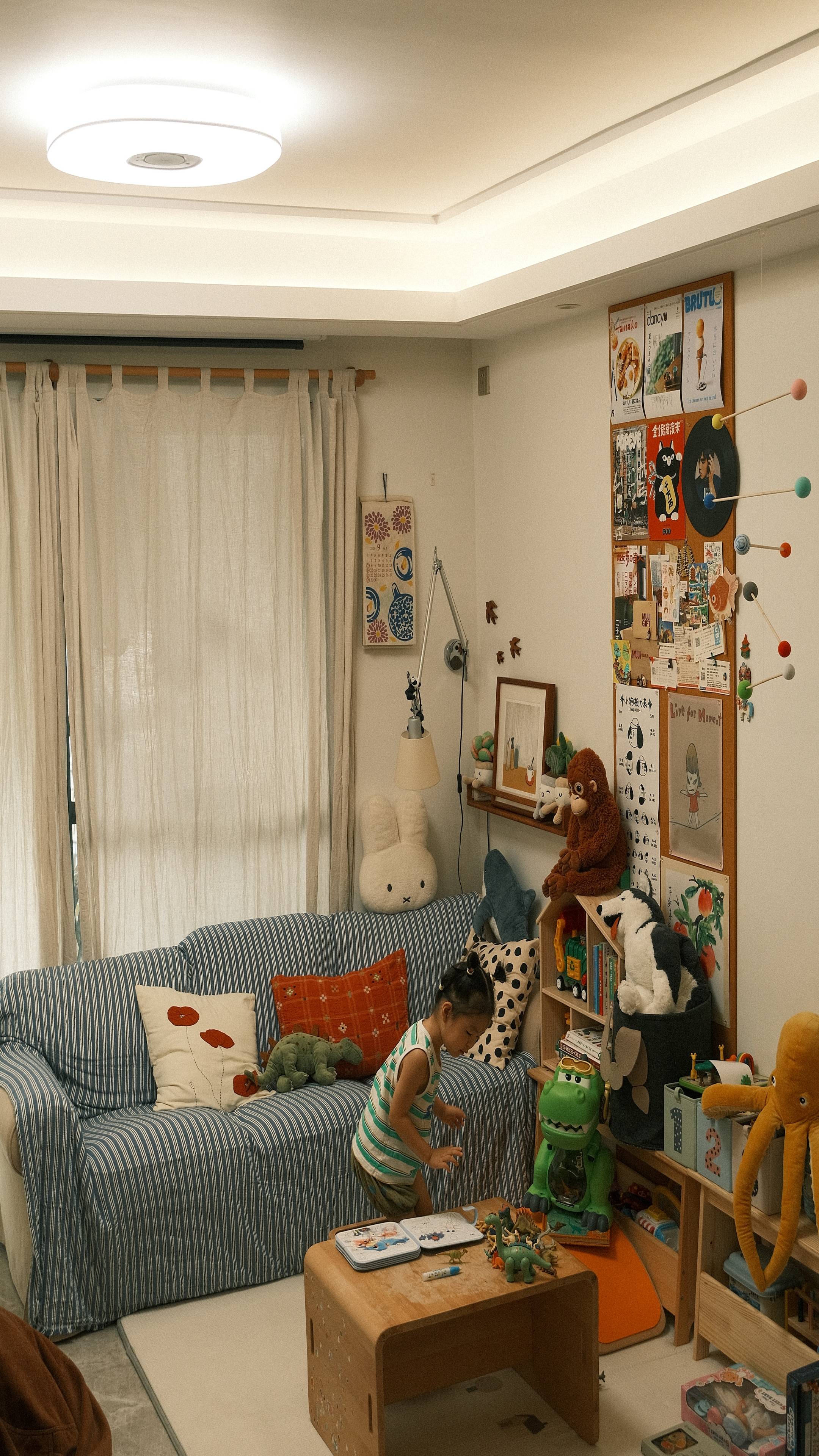 当朵朵开始自主阅读,传统吸顶灯的刺眼眩光与边角昏暗成了新烦恼。Aora采用3D全域柔光技术,三层光源经45°控光灯罩与墙面漫反射,在25㎡空间形成均匀光场。中心区域800lx的照度足够拼积木、读绘本,而0.72的照度均匀度(WELL V2标准>0.4)让窗边、床尾的每处角落都明亮如春日午后。
