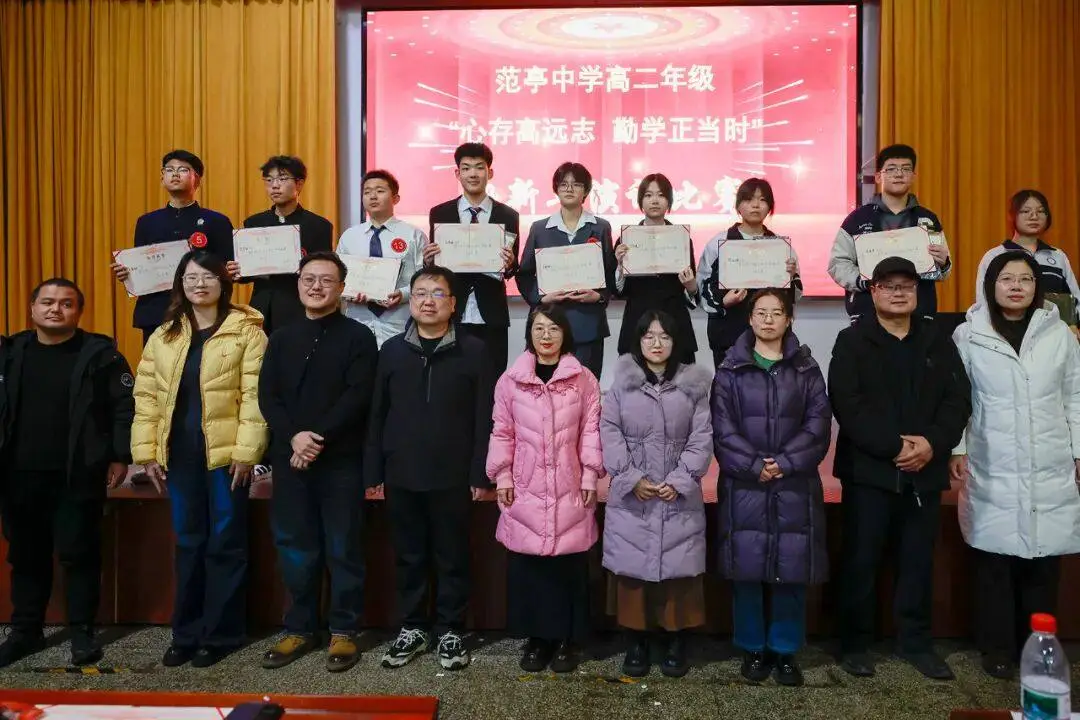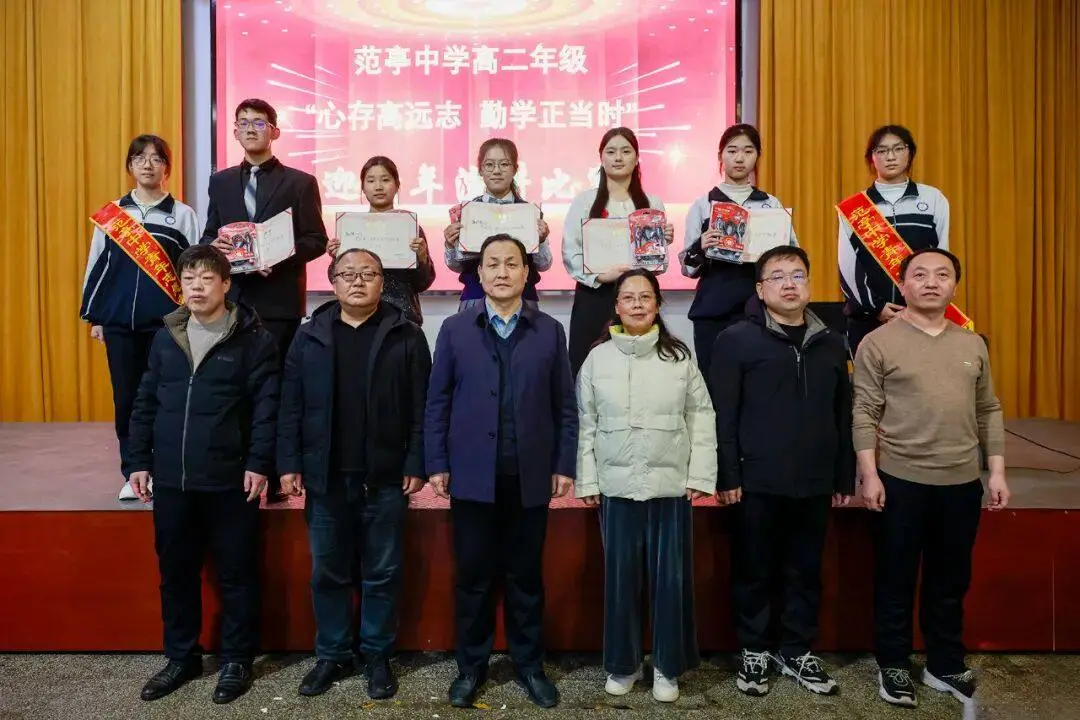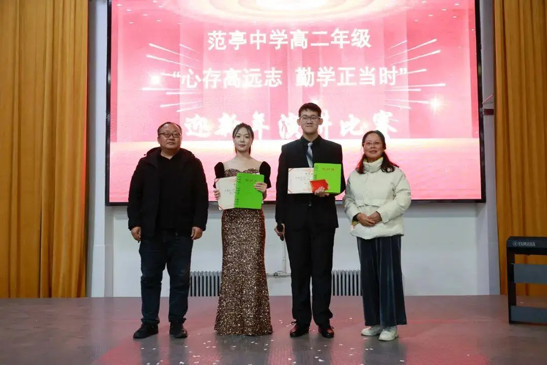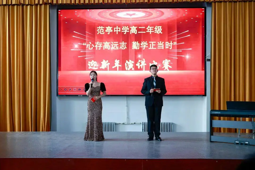 新年来临之际,为营造积极向上的校园文化氛围,展现新时代高中生的青春风采,12月28日下午,山西省范亭中学高二年级在学校报告厅举行了以“心存高远志 勤学正当时” 为主题的迎新年演讲比赛。党委书记、校长杨志勇,纪委书记李永强,校委委员刘彩萍、王跃生,总务处副主任黄海磊,高二年级主任郗磊,副主任张喜林、任建锐以及高二年级全体班主任老师、音乐教师和学生参加了本次活动。