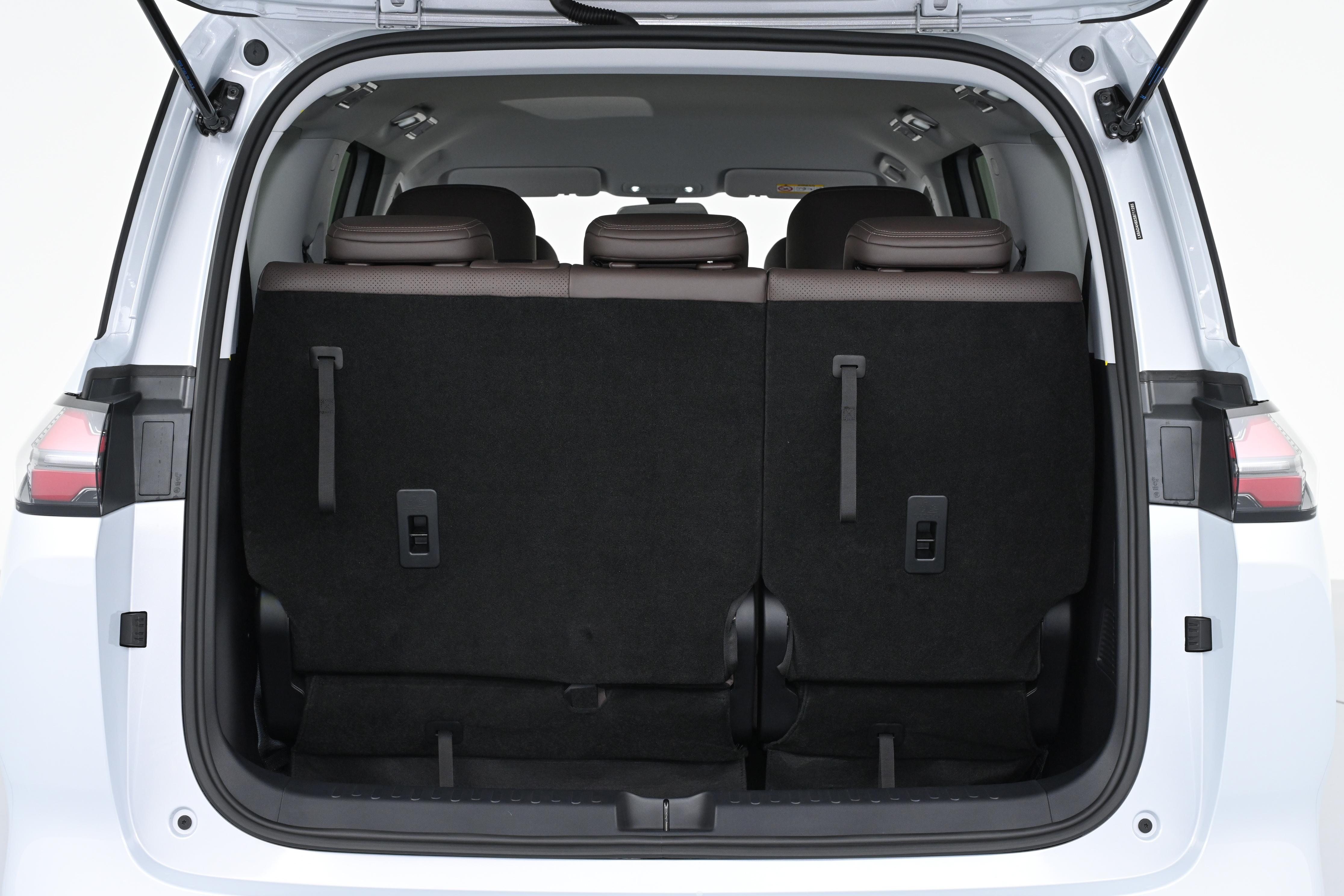 第三排座椅还巧妙地采用魔术翻折设计,可通过座椅靠背放倒和坐垫二次翻折,实现315L - 1202L的百变后备厢容积变换。这就意味着,当你全家出行时,把第三排座椅立起来,能坐七个人;当你需要装载大件物品时,把第三排座椅放倒,就能有超大的装载空间。最宽处达1164mm的超大尾门开口,方便大件物品自由进出。比如说你要搬个大冰箱或者拉一些家具,都能轻松装下。全车还设置了25处人性化储物空间,方便小物件随放随取,像手机、钥匙、水杯等,都能有合适的地方放。