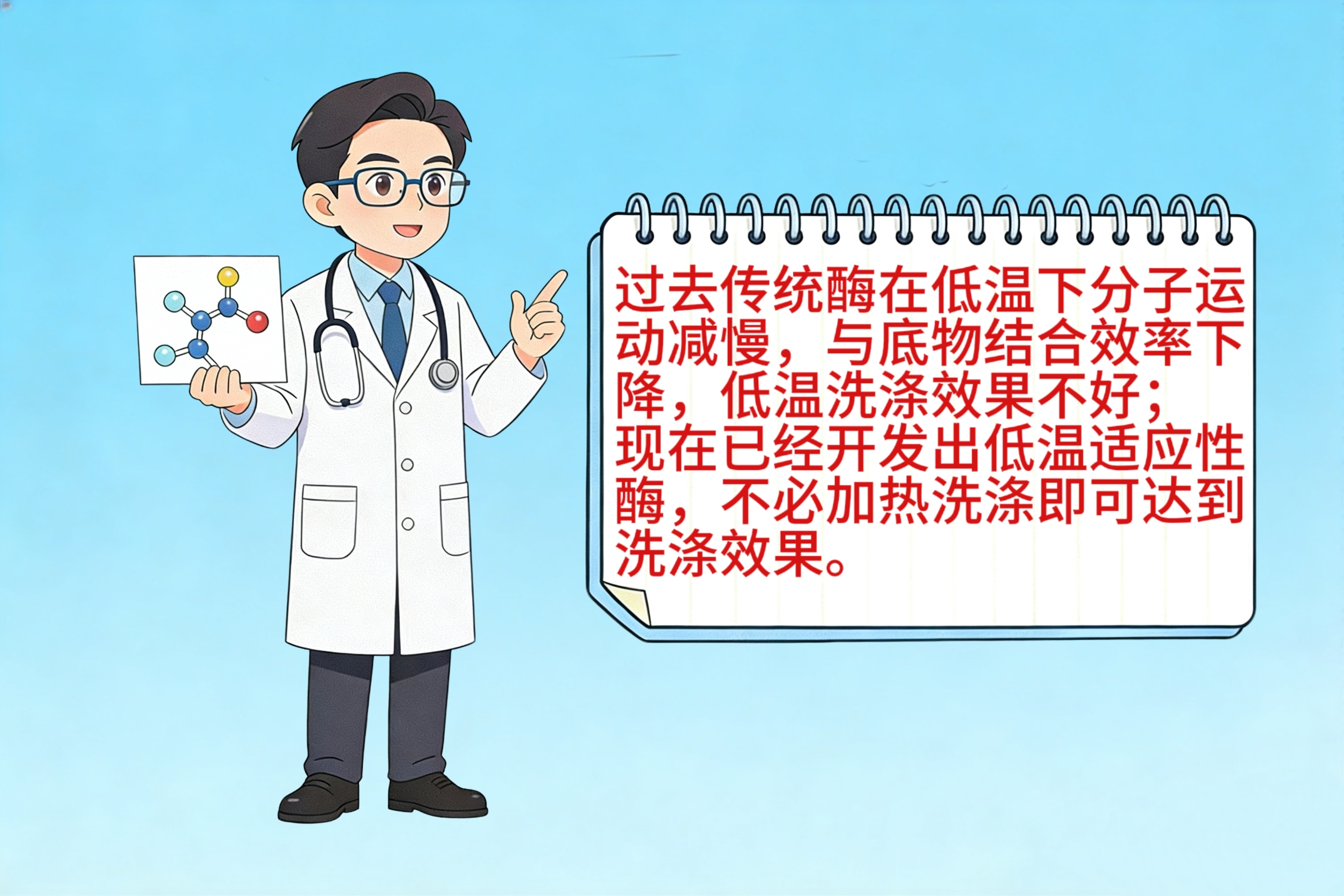 本质类比酶与温度的关系好比厨师切菜:传统酶是“怕冷的厨师”,低温下手指僵硬切不动菜;而低温改良酶是“戴保暖手套的厨师”,即使环境冷,依然能灵活操作——关键在于“工具改良”而非“环境升温”。