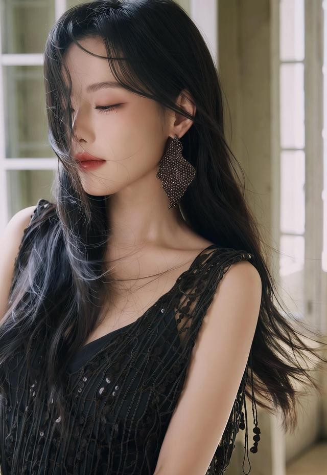 尤其是这次的妆造,更能凸显何瑞贤的优势。一件黑色的镂空流苏毛衣,搭配黑色修身长裙,还有闪耀的大耳饰,一种“豪门贵气”感就油然而生了。而何瑞贤的长相和气质都很大气,能压得住这种贵气。