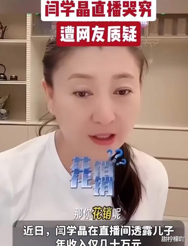 只是说闫学晶直播的时候直播间的网友大多数都是普通的上班族,在这个时候还说自己儿子儿媳年入几十万不够花,这自然就会让大家觉得不舒服。