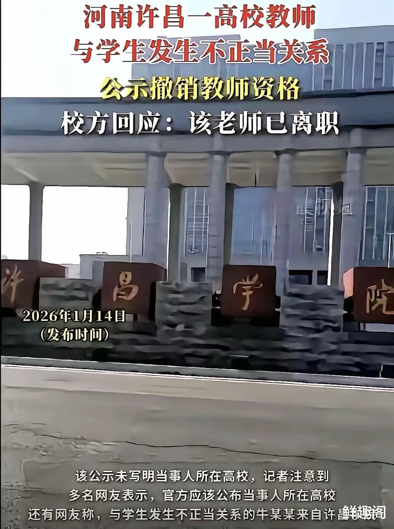 截至到2026年1月20日,当事人牛某骋始终未对外发声。其沉默态度引发各方猜测,有网友认为这是“默认”,也有人猜测可能涉及更多隐情。众所周知,教师的职责并非局限于教授知识,而且还要起到引导和树立正确价值观的作用。所以教师的素养和道德是不能有任何瑕疵的,希望各个院校在选聘教师的过程中,不能只着重于教学质量。对此,大家怎么看呢?