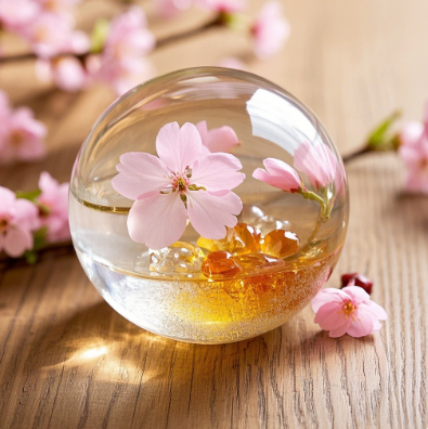 水晶球容器:透明材质如魔法道具,将樱花盛景 “封印”,光影折射下,每一个角度都散发梦幻氛围,提升整体时尚格调。