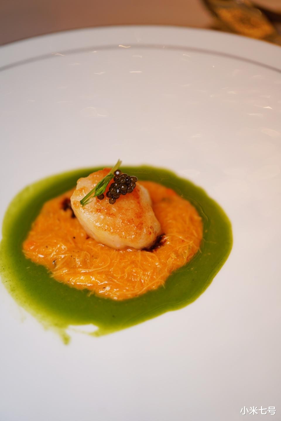 蟹粉的鲜美与北海道带子的鲜嫩相互融合,