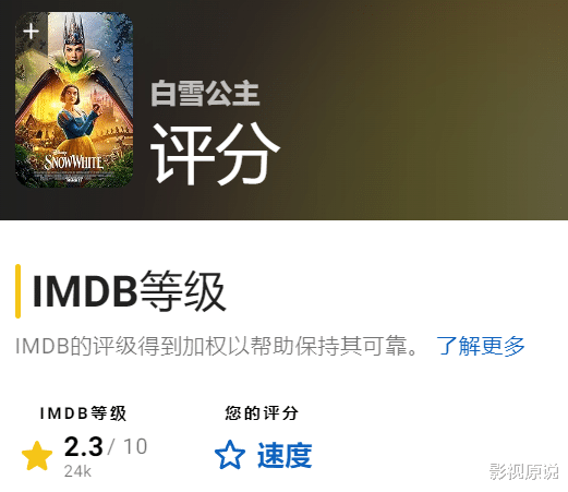 而且不仅仅只是我们国内,在海外《白雪公主》的口碑同样很差,它的IMDb评分就只有2.3分,观众们评价此片说:“影片很糟糕,很无聊”。