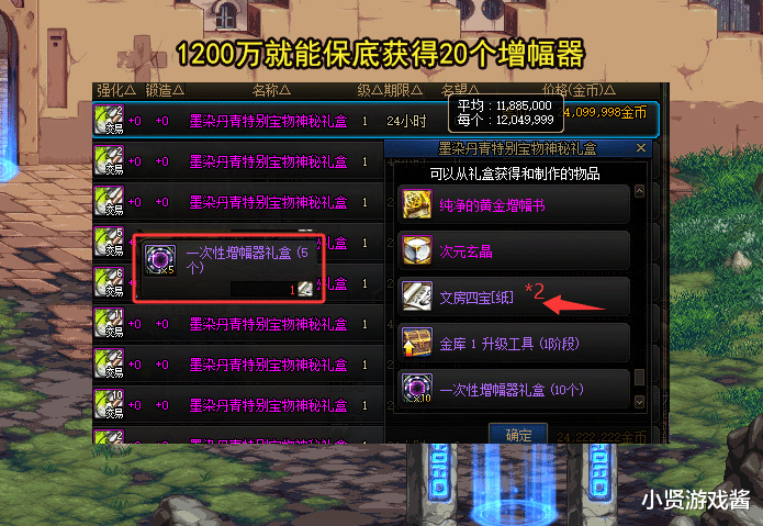 其中20个增幅器之所以会降价这么多,是因为宝物神秘礼盒1200万保底就能获得20个增幅器,买礼盒获得更具性价比。