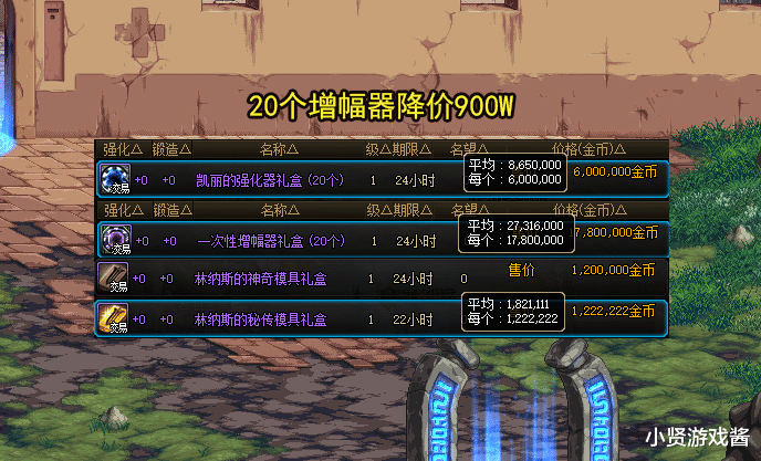 其他道具方面,20个强化器降价了265万,20个增幅器降了900万,2大模具则降了50万左右。