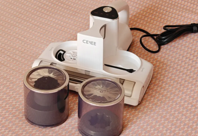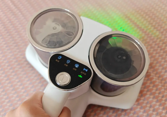 重点夸夸它的核心性能,每一项都精准戳中除螨痛点,实测效果肉眼可见。它搭载希亦独创的HVTOP双擎动力系统,配合大直径交叠螺旋力场技术,拍打振动效率比普通除螨仪提升200%,每分钟12000次高频强拍打,能轻松震碎深藏在床垫、被褥纤维里的螨虫、虫卵,哪怕是附着在纤维深层的尘螨排泄物,也能被彻底震松。再搭配15000Pa飓风级负压吸力,实现“拍吸同步”,除螨率高达100%,能一次性吸走所有震落的螨虫、灰尘和皮屑,实测一次就能吸出满满一杯灰白色的尘螨混合物,清洁力直接拉满,比普通除螨仪高效60%。杀菌方面更是惊艳,内置5颗253.7nm波长的UVC紫外线灯珠,杀菌能量密度是普通款的5倍,配合DeepC超声波空化技术,每秒20000次高频声波深入纤维层,分解螨虫排泄物,除菌率高达99.99%,能有效杀灭72种以上的病毒、细菌和过敏原,守护女生敏感肌和家人呼吸道健康。