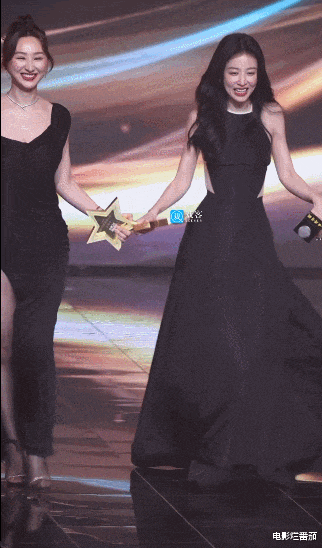 而最近几年风头正盛的高海宁则身穿不对称肩带的黑色晚礼服上台,裙子的裙摆采用了高开叉的设计,整个人修长又优雅,和陈豪分列大老板两侧,确实很养眼。