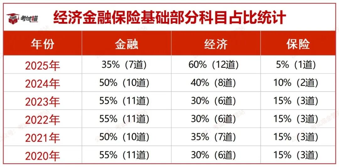●经济金融基础(占比10%)单选20题0.5分1题,10分;