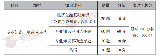 分值比例:专业笔试满分100分,其中:经济金融基础知识占比10%,专业知识占比80%,英语占比10%。具体如下:
