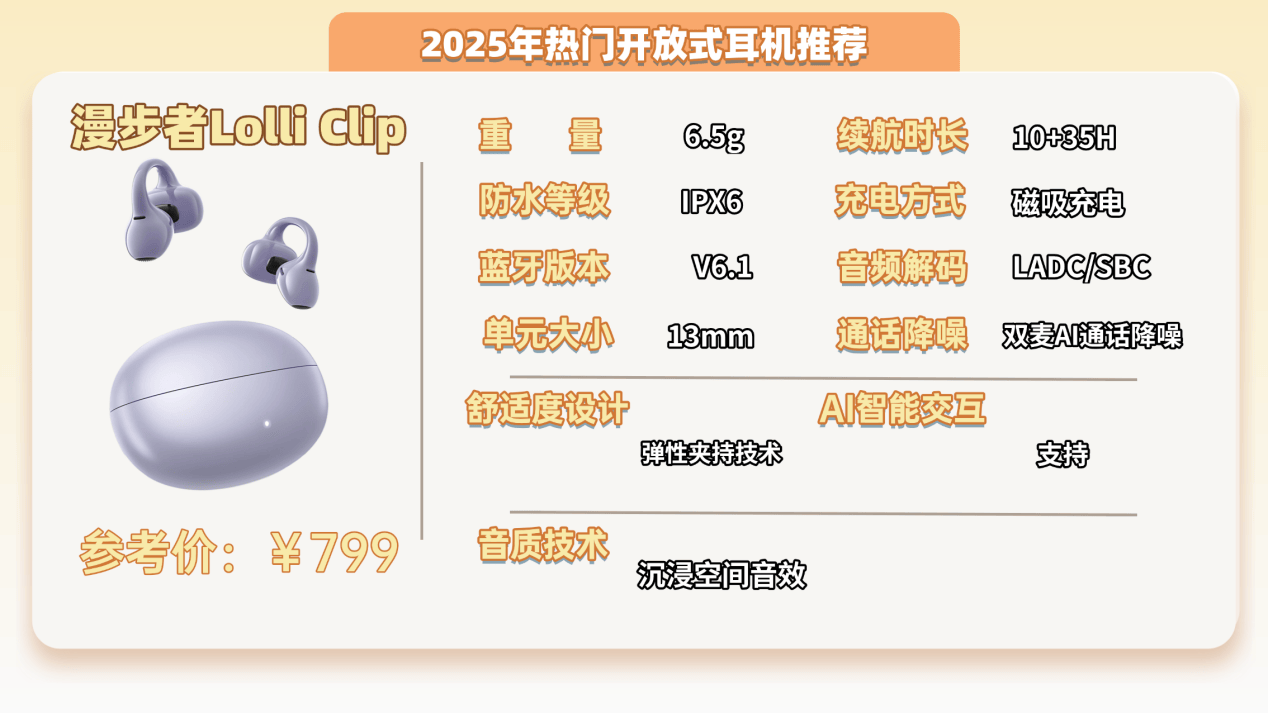 推荐八:漫步者Lolli Clip开放式耳机 (799元)