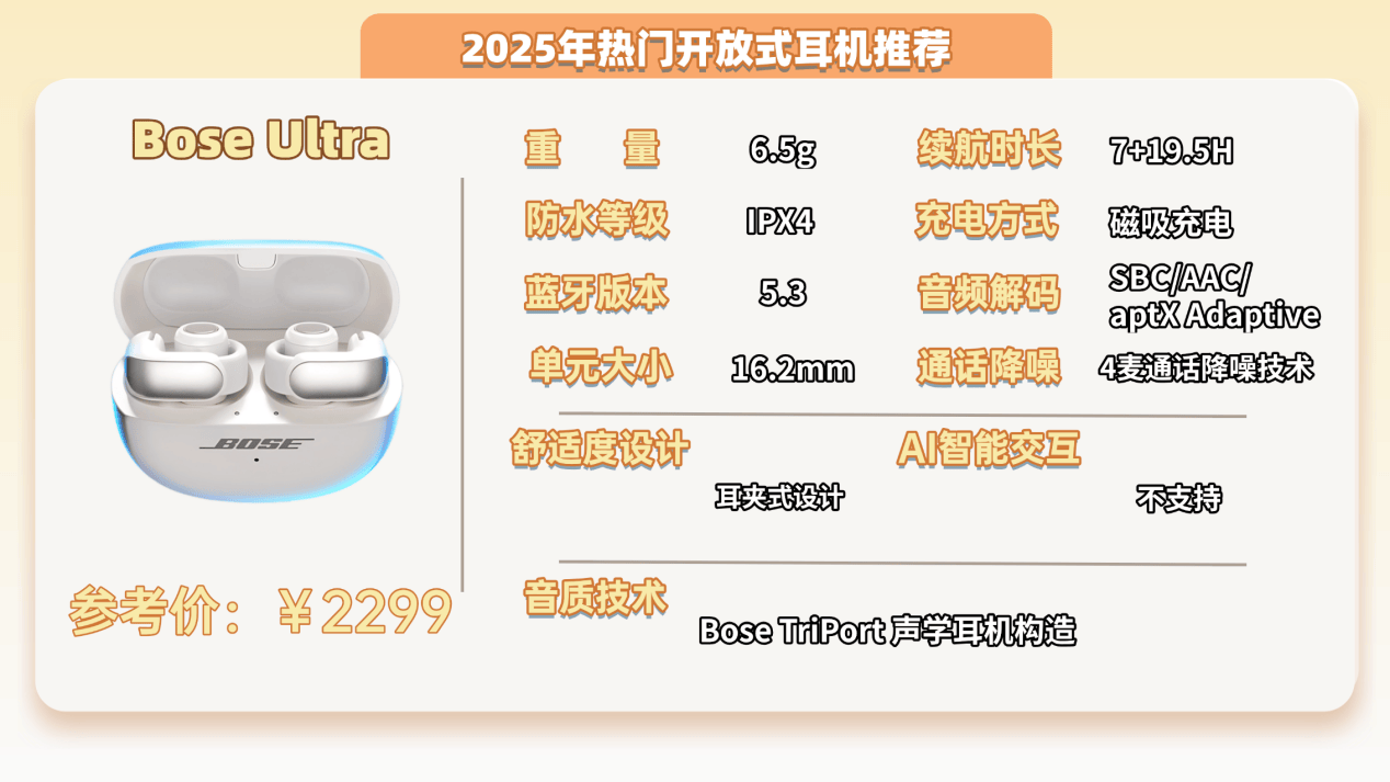 推荐九:Bose Ultra开放式耳机 (2299元)