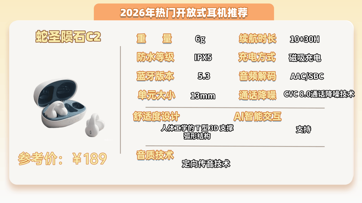 推荐三:蛇圣陨石C2开放式耳机 (189元)