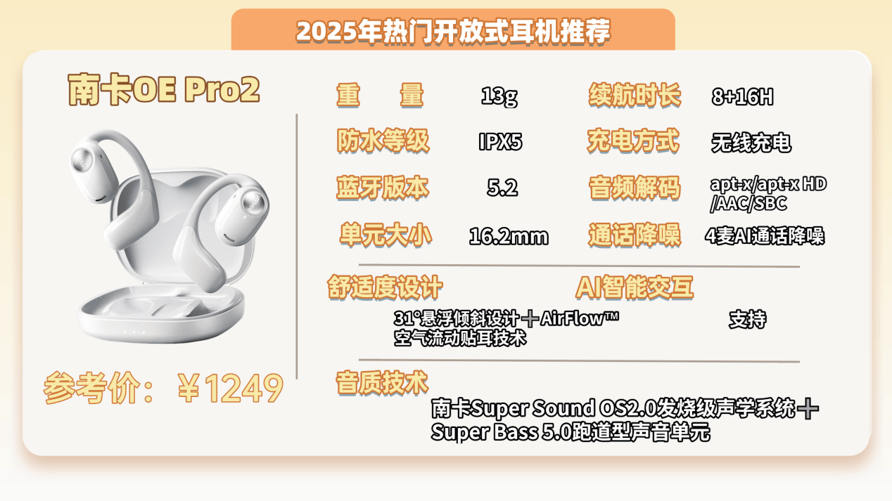 推荐四:南卡OE PRO2开放式耳机 (1249元)