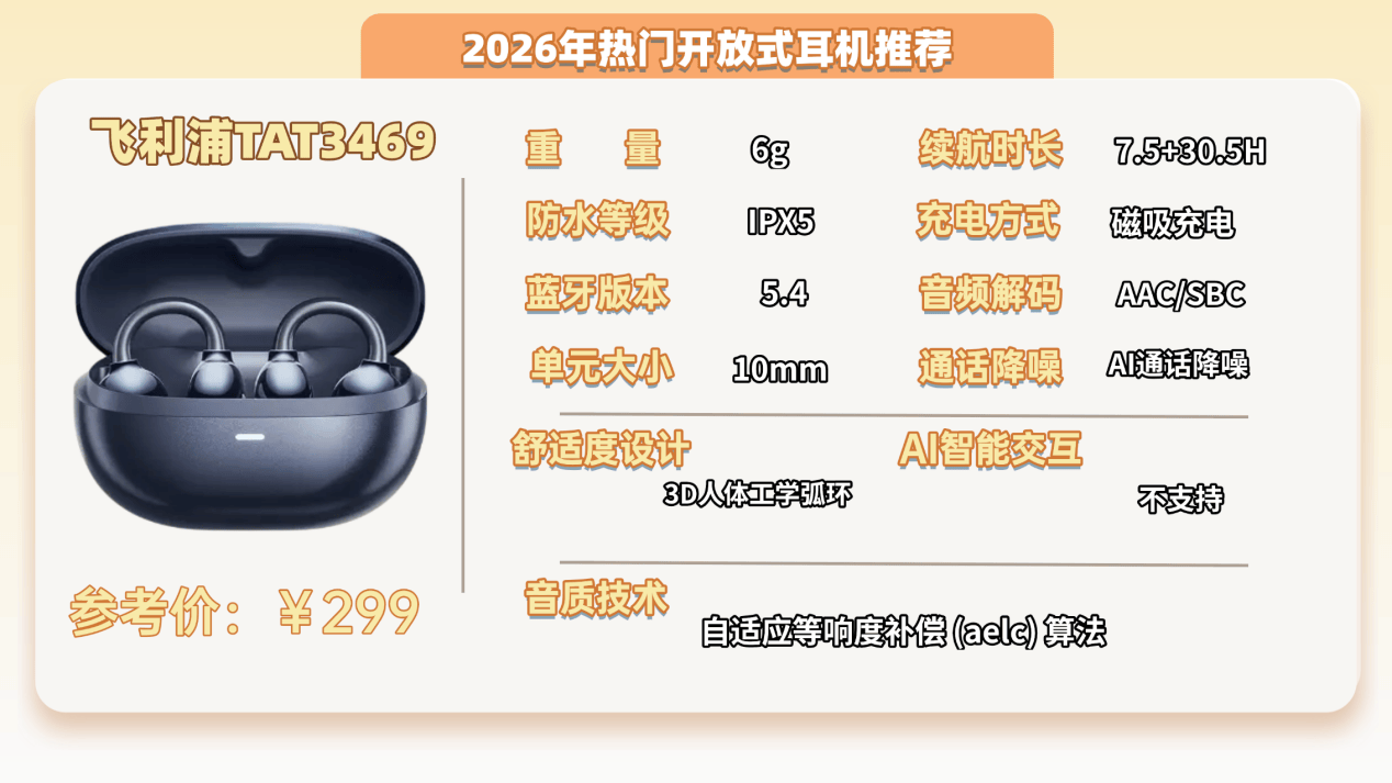 推荐二:飞利浦TAT3469开放式耳机 (299元)