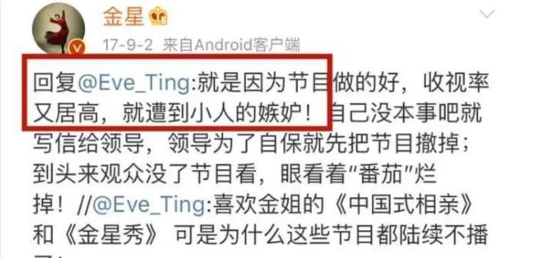 面对观众的疑问,金星曾公开表示,节目停播是因为“太火了,遭人嫉妒”,暗指有人“写信”给领导导致节目被砍。