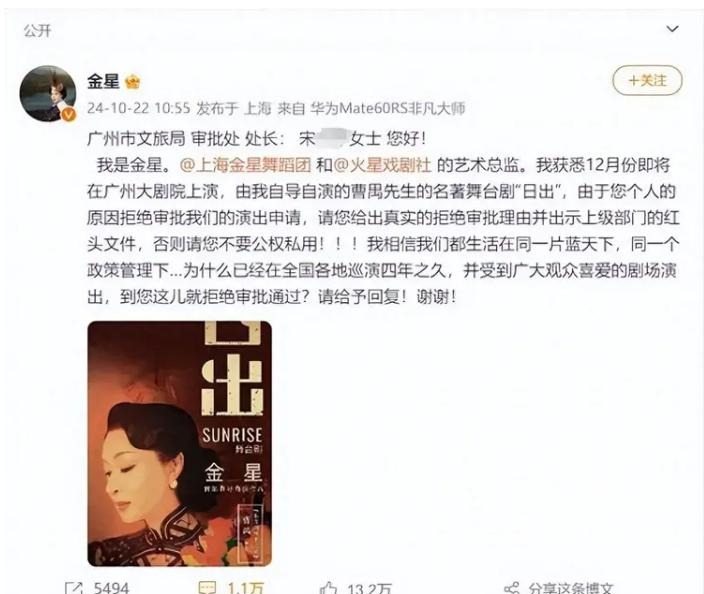 演出方出于对潜在风险的考量,紧急叫停了金星后续的全国巡演。