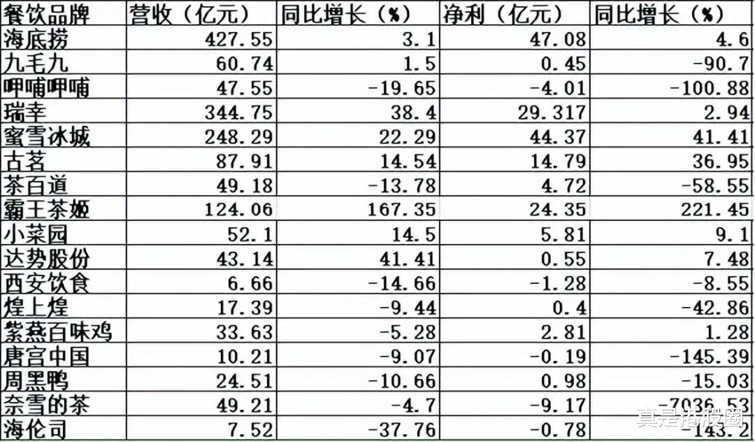 对比同样是嘴巴生意的茶饮,餐饮的差是全面性的。海底捞作为国内第一大餐饮公司,业绩几乎没有成长,后疫情红利一下就消退,相反,茶饮头部公司倒是都在加速。