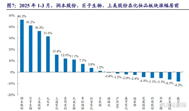 这两个便是餐饮和化妆品行业。今年以来,这两个板块的平均涨幅均为负,头部公司表现一般,而再观察行业数据,餐饮不景气,化妆品行业也是多年增速低位,多家公司的一季报都出现了利润同比下滑。