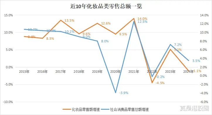 美妆行业整体性的增速不佳是核心,整体是下滑的,当然外资企业下滑得更厉害,2024年中国化妆品进口额是-9%,因此国内公司的增速不算很差,不能归因于赛道不行。