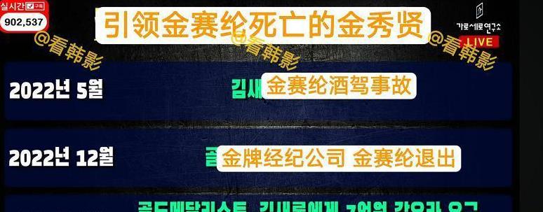 最近,韩国著名狗仔透露,金赛纶的自杀与金秀贤有一定关联。3月10日下午,韩国一位著名狗仔在直播中,联系了金赛纶的亲属。根据直播的信息,金赛纶在15岁时就开始和金秀贤谈恋爱,那会儿她才上初二,金秀贤比她大了整整12岁呢。他们相恋了整整6年,直到2021年分手。