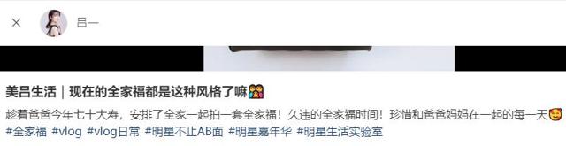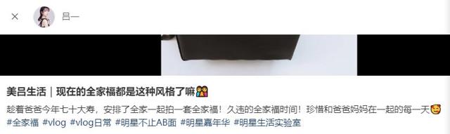 6月24日,吕一发布了晒出了家庭温馨瞬间,并配文:“趁着爸爸今年七十大寿,安排了全家一起拍一套全家福,久违的全家福时刻,珍惜和爸爸妈妈在一起的每一天。”