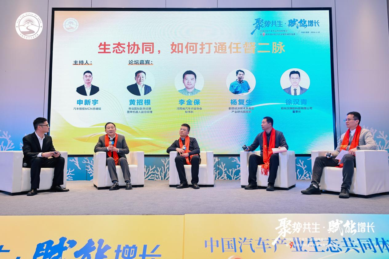 奇瑞国际副总经理、墨甲机器人副总经理黄招根从“智能科技”视角,展望了AI与机器人如何超越工具属性,深度融合进生产制造与个性化用车场景,重塑产业效率。河南省汽车行业协会秘书长李金保则阐述了行业协会在生态时代应扮演的“连接器”与“润滑剂”新角色,推动从“管理”到“服务”、从“单点”到“网络”的职能进化。鹤壁经济技术开发区产业研究院院长杨复生分享了地方产业平台如何凭借在汽车电子等细分领域的集群优势,成为生态网络中坚实而活跃的节点。郑州汉豫航科技有限公司董事长徐汉青从充电网络这一“毛细血管”出发,指出生态化运营的核心在于以用户体验为中心的数据闭环与商业模式创新。