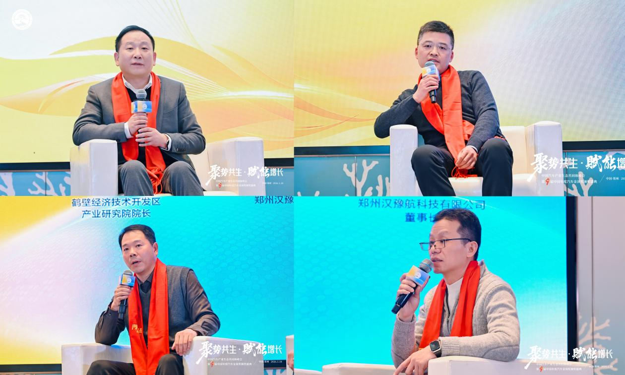 奇瑞国际副总经理、墨甲机器人副总经理黄招根(左上)、河南省汽车行业协会秘书长李金保(右上)、鹤壁经济技术开发区产业研究院院长杨复生(左下)、郑州汉豫航科技有限公司董事长徐汉青(右下)
