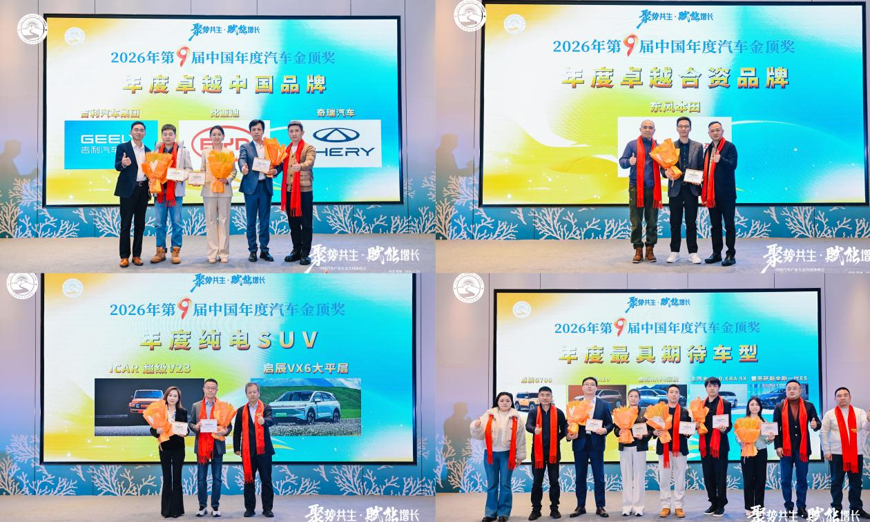 思想盛宴之后,第9届中国年度汽车金顶奖颁奖盛典在璀璨灯光与激昂音乐中荣耀开启。本届奖项体系全面重构,在延续表彰“年度卓越中国品牌”(比亚迪、吉利、奇瑞)、“年度卓越合资品牌”(东风本田)及各类年度标杆车型的同时,重磅新增 “年度生态贡献奖”、“年度用户生态创新奖”、“年度产业链协同奖” 等生态导向奖项,旨在褒奖那些积极构建或融入健康产业生态、创造增量价值的先行者。