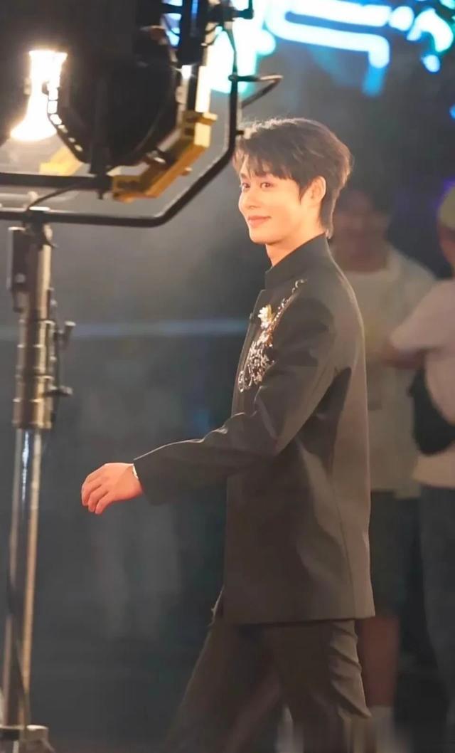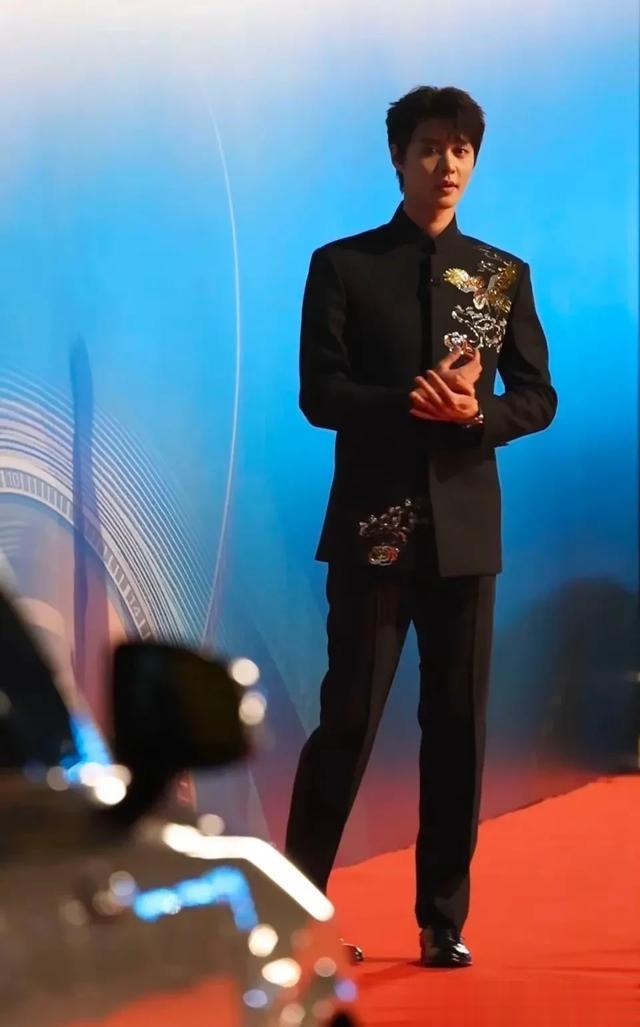柯淳身着一袭中国风黑色西装参加无限超越班毕业红毯,板正又帅气