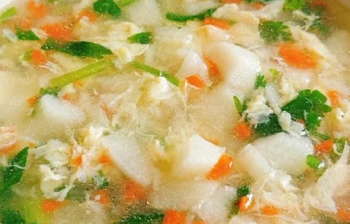 在制作这道汤的时候,你只需把山药切成小碎块,和胡萝卜一起煮熟,再淋入搅散的鸡蛋液,一碗清香、美味的山药鸡蛋汤就做好了。