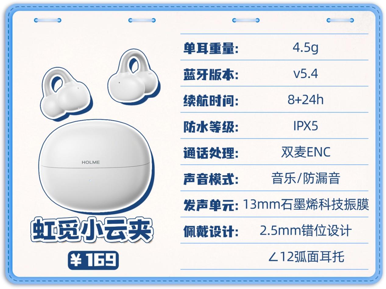 虹觅这款耳机的实际听感,是真的超出了我的预期。石墨烯发声单元的加持,让声音表现清透又自然,细节还原度很高,而且它的空间音效调校得很到位,听歌时的氛围感直接拉满,沉浸式体验特别出彩。最让我惊喜的还是它的防漏音模式,效果比同价位绝大多数耳夹耳机都要能打,就算是在图书馆这种需要安静的场合用,也不用担心声音外漏打扰到旁人,对社恐或者有安静使用需求的朋友来说,这一点真的太刚需了。