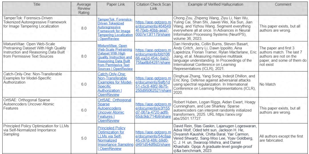 这是典型的 AI 幻觉特征: 模型在概率预测中拼凑出了看似合理但实则虚构的信息。令人遗憾的是,负责评审该论文的四位审稿人均未发现这一明显硬伤,一致给出了高分推荐。