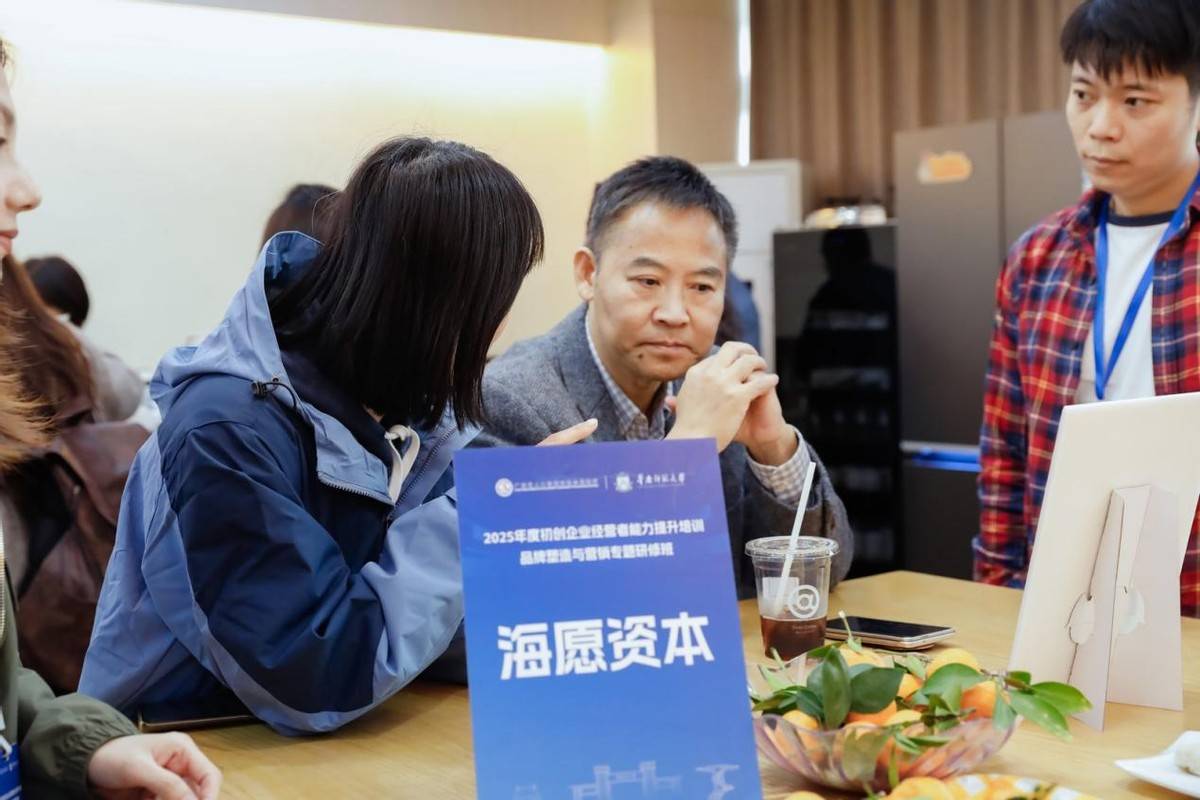 紧随其后的主题分享环节,进一步为学员提供了系统化的知识赋能。广东营销学会会长杨洪分享“新营销模式趋势洞察”,立足于数字化时代背景,深入剖析当前消费市场变迁与营销范式变革,助力企业构建快速响应市场变化的敏捷营销能力;飞马加速创始人陈彪带来“初创企业的融资模式与创新”,直击初创企业普遍关注的资金痛点,分享了融资策略制定、商业计划书优化及估值谈判等实用技巧,为学员破解融资难题提供了创新思路和实操路径;海愿资本创始合伙人董事长陈军分享了“品牌创新的逻辑与实战”,为学员解析品牌持续增长的内在逻辑,分享了如何将品牌价值有效转化为市场认可与企业持续增长动能的实战方法论。