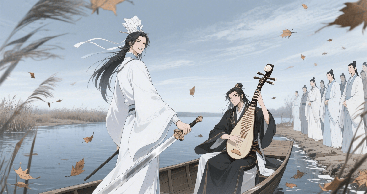 就那么一笑。荆轲这一笑,加上那句决绝的“风萧萧兮易水寒,壮士一去兮不复还”,瞬间把悲壮的气氛推到了顶点。那份沉重和决绝,光是想想就让人心头发紧。高渐离手里的筑声,应和着他的歌声,仿佛敲在每个人的心上。整个河边,就剩下风声、筑声和这悲歌,交织成一幅令人无比唏嘘的画面。
