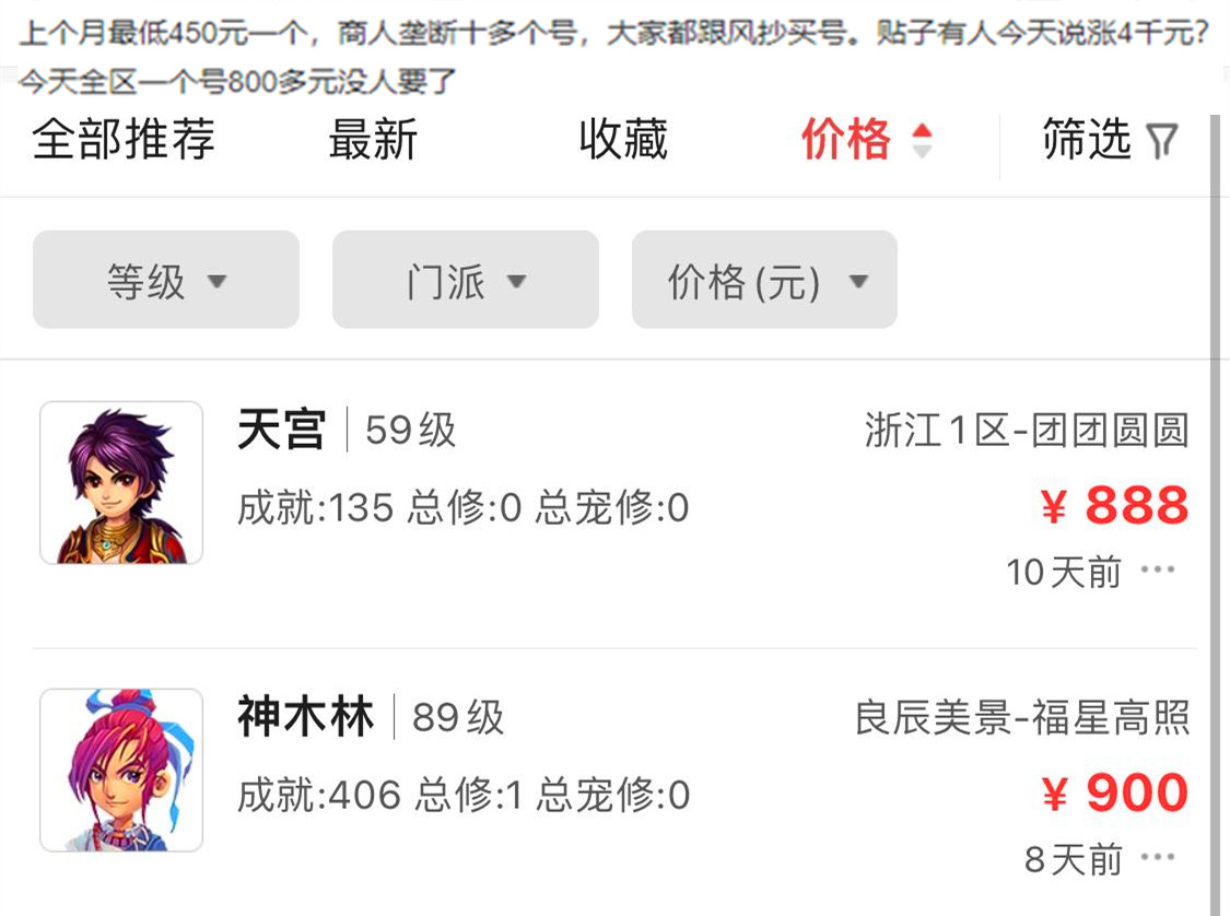 恶魔猪猪是一个需要各位玩家通过抽奖的方式才能够获得的限量祥瑞,恶魔猪猪的产出量特别多,因此藏宝阁上拥有恶魔猪猪角色的价格也是比较便宜的,小编之前看的时候一个恶魔猪猪的角色最便宜只需要450就能够买得到,但是现在在藏宝阁上再看的时候就已经涨价到800多了,有玩家表示这是梦幻中某些商人在炒作,那些商人甚至表示,恶魔猪猪角色以后的价格能够涨到4000以上。