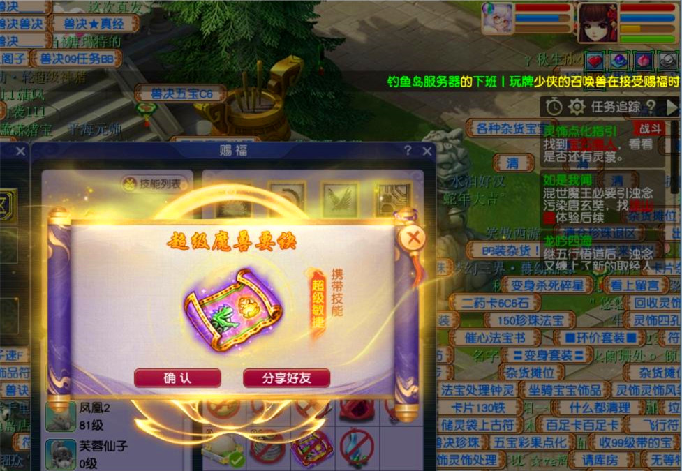 上面的这本超级敏捷的兽诀是在钓鱼岛服务器产出的。在现在的梦幻西游中,大家想要获得超级魔兽要决就只能靠赐福,所以现在超级魔兽要诀得价值是比较高的,那么小编想问一下在座的各位玩家。上面的这本超级敏捷卖出去能够换一辆什么车呀?如果各位玩家的要求仅仅是代步,上面的这本超级敏捷换的车应该可以满足各位玩家的需求。