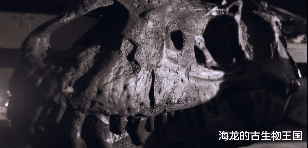 牙形状上的不同并不是区别霸王龙和矮暴龙的唯一途经,一条线索可以帮助研究团队重构殊死战的场景。殊死战化石中掠食者的牙将揭露它的死因。如果这些牙用来撕扯的话,而不是一口咬死猎物的话,那就意味着矮暴龙捕猎时不是单打独斗的,而是群体作战。鲍勃.巴克在别的三角龙化石中找到了支持这种假设的证据,这个样本是在布拉克山附近发现的,那里有矮暴龙脱落的30多颗牙,我们能凑齐30颗脱落的牙。大概需要10到15只暴龙,这只三角龙是一群暴龙的猎物。这或许意味着,霸王龙的生活的世界远比我们之前想象要复杂得多。霸王龙需要同其它掠食者争夺食物。