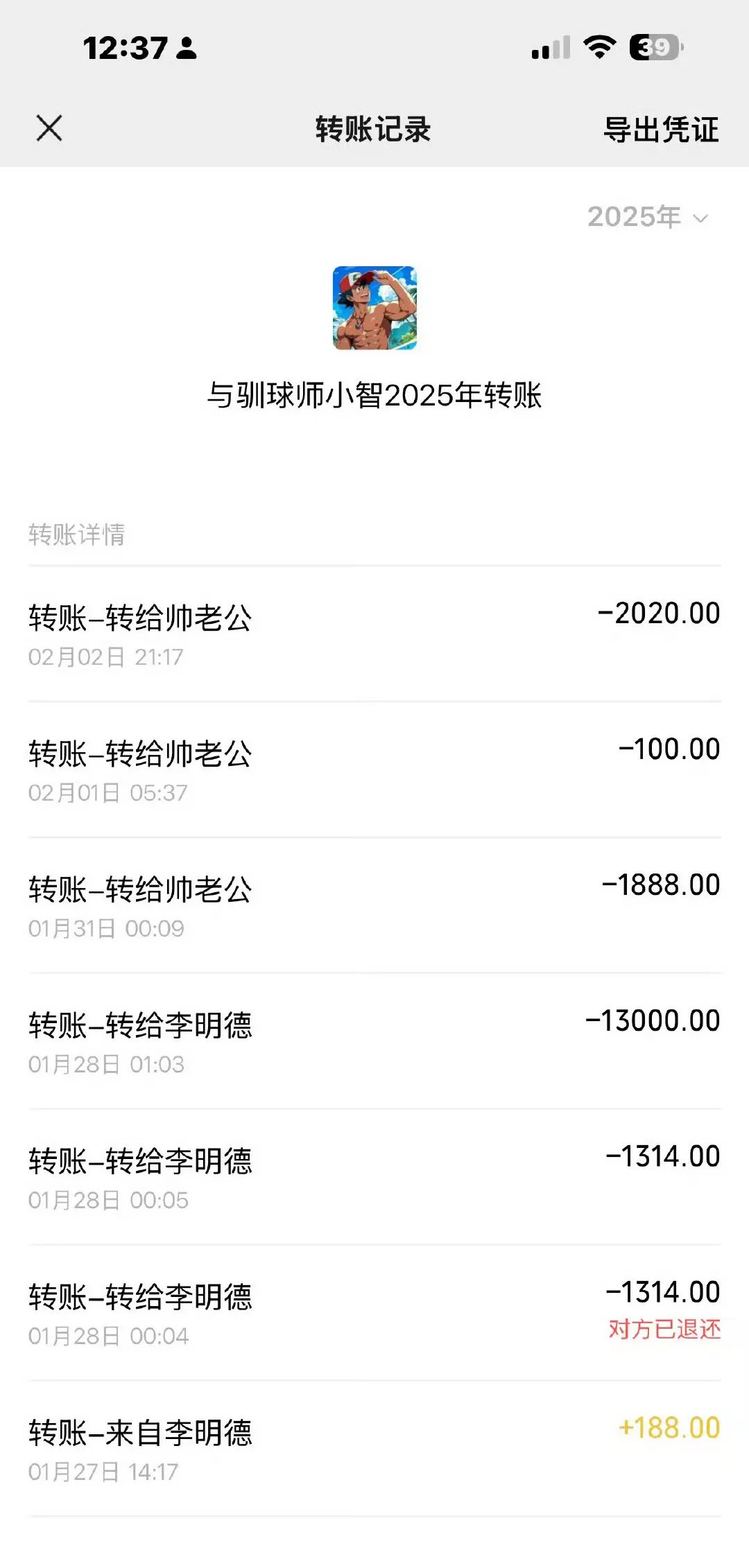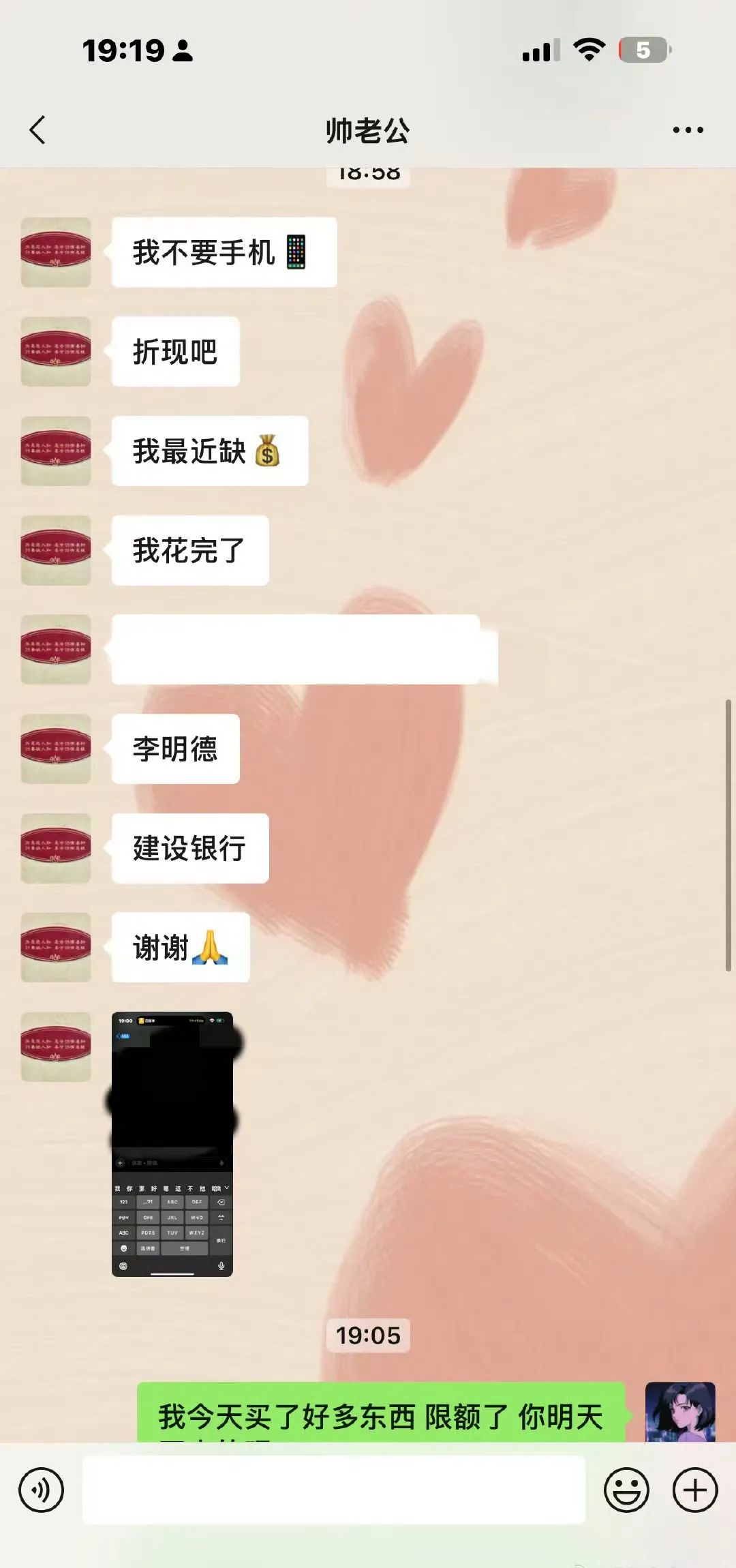 她说她付钱给李明德垫付房租,后面不给钱就会遭到李明德的冷暴力和拉黑,甚至有过深夜将她丢在门外。给李明德买手机对方说折现,让她转账,晒出多笔转账截图。