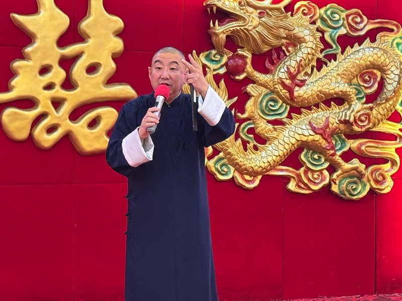 曲艺节目紧随其后,欢乐不断升级。郭一龙老师带来快板《笑声满堂》,节奏明快、语言幽默,赢得阵阵掌声;随后,滕刚与黑旭合作的相声《好好说话》,妙语连珠、配合默契,逗得观众捧腹大笑。压轴登场的——中国曲艺最高奖牡丹奖获得者、广东省曲协副主席、深圳市曲协主席刘昭老师带来评书《袁四爷算卦》,凭借跌宕起伏的故事情节和生动人物塑造,将现场观众牢牢吸引,节目结束后,全场掌声经久不息。