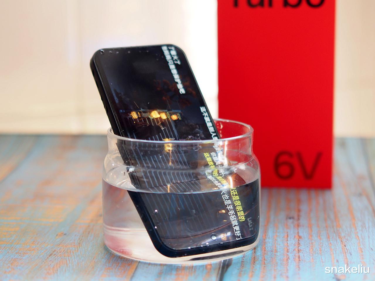 Turbo6V通过了满级防水和耐摔测试,支持IP66/68/69/69K防水等级,不怕水冲洗、泡水、热水等侵袭。说的直白一些,可以让手机在1.5米深的水中浸泡30分钟手机仍然可以正常使用。所以日常的下雨、泼洒、手滑都不用担心,而且手机屏幕还支持湿手触控,有水在屏幕上也不影响操作。