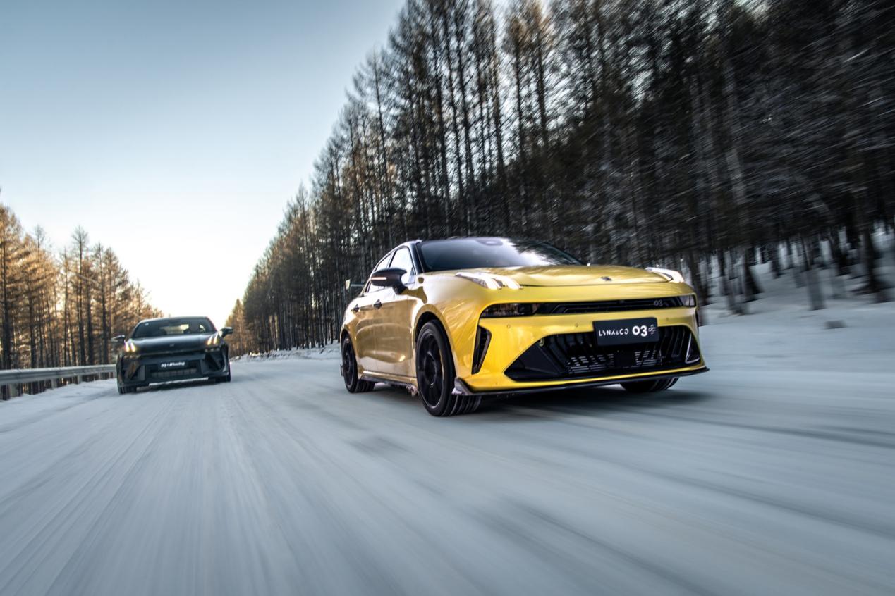 性能层面,领克03家族以专业调校回应冰雪路面的极端挑战。新领克03+性能进阶版搭载的2.0TD T6双增压发动机,最大马力309Ps,峰值扭矩420N·m,百公里加速仅5.41秒,即便在零下温度中仍能保持敏捷的动力响应。第六代博格华纳智能四驱系统通过50:50黄金扭矩分配,显著提升冰雪路面的抓地力,确保漂移动作的精准可控。新领克03+Racing则进一步升级,搭载十段可调的Bilstein高性能减震器与碳纤维宽体套件,高速行驶时车身稳定性提升,成为冰雪路面操控的标杆。